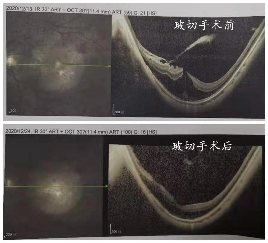 ? ? ? ? “戴了20多年眼鏡了,近視2000多度,摘掉眼鏡什么也看不見,前段時間我就發(fā)現(xiàn)我的左眼視力開始下降,而且看對面的大樓都是彎的,我就趕緊來醫(yī)院做檢查,沒想到經(jīng)過檢查,大夫跟我說我的眼底‘裂開’了。”